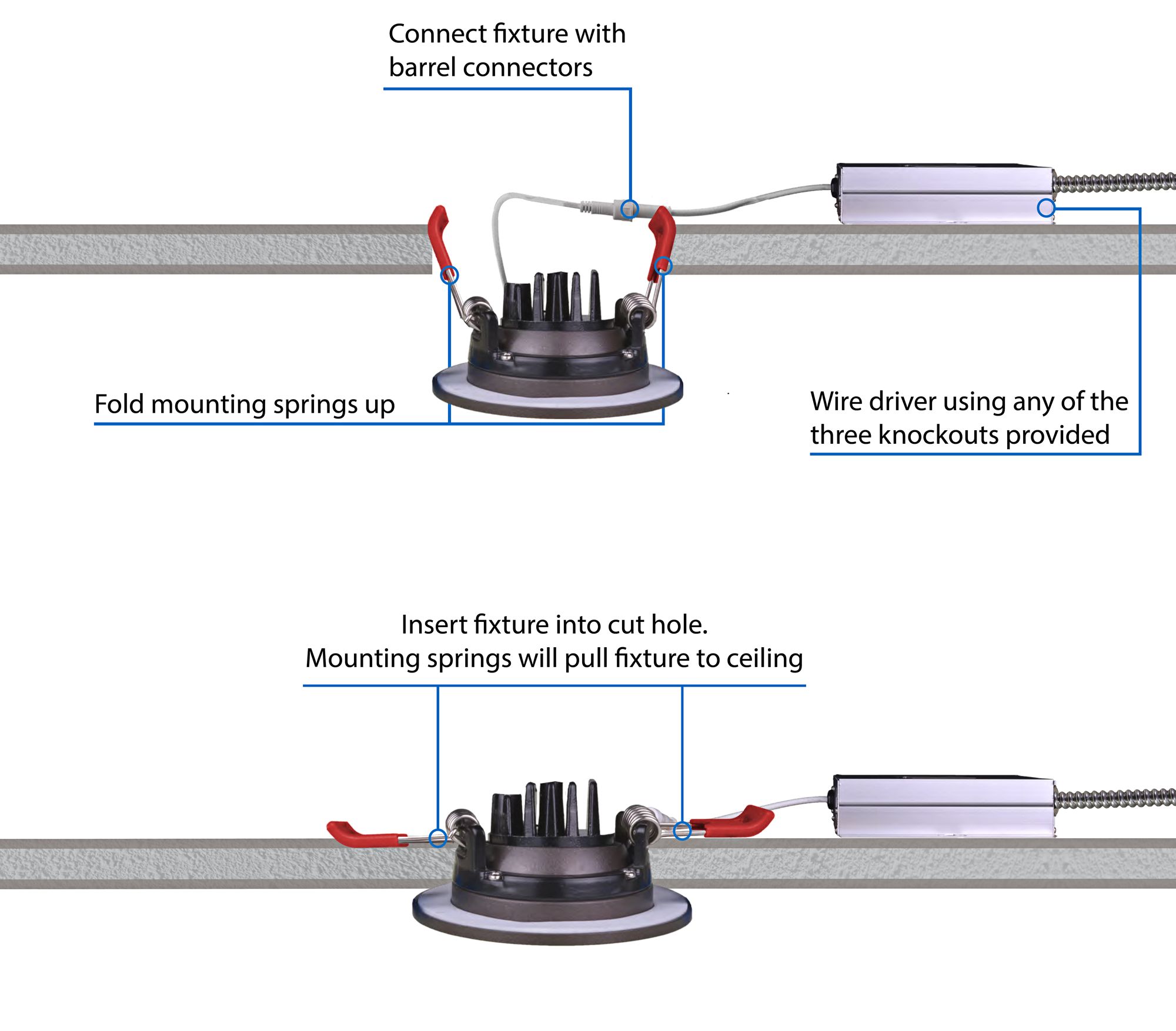 Remodel housing, decorative trim with integrated leds, wire nuts and a cutting stencil all in one box. Recessed led lights ideal for sloped ceilings, highlighting artwork, for insulated ceilings and damp locations. With our new led gimbal recessed fixture, this has now become a reality with the easiest of installations. Recessed kits from lithonia lighting make selecting and installing downlighting easy by conveniently including remodel housing, decorative trim and a gu10 lamp all in one box. There are moments when you want the ability to direct light as you please.